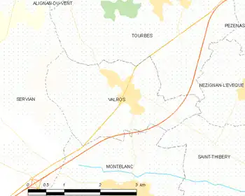 - « Orthodromie entre Valros et Tourbes », sur fr.distance.to (consulté le ).