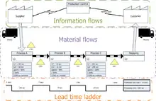Le value stream mapping décrit toutes les étapes à valeur ajoutée et sans valeur ajoutée qui amènent un produit d'un état initial à un état final. Cet outil amène à travailler sur un ensemble et non une partie : sur une ligne de production, le VSM ne s'attache pas à une machine de la ligne en particulier mais à l'ensemble de celles-ci. La plupart du temps, le VSM se limite à l'entreprise même, mais il peut être utile d'incorporer l'approvisionnement en amont et la livraison aux clients en aval[2].