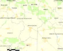 Pour la période 1971-2000, la température annuelle moyenne est de 10,8 °C, avec une amplitude thermique annuelle de 15,2 °C. Le cumul annuel moyen de précipitations est de 740 mm, avec 11,3 jours de précipitations en janvier et 7,8 jours en juillet[11]. Pour la période 1991-2020, la température moyenne annuelle observée sur la station météorologique la plus proche, située sur la commune de Chevru à 10 km à vol d'oiseau[13], est de 11,2 °C et le cumul annuel moyen de précipitations est de 697,7 mm[14],[15]. Pour l'avenir, les paramètres climatiques de la commune estimés pour 2050 selon différents scénarios d'émission de gaz à effet de serre sont consultables sur un site dédié publié par Météo-France en novembre 2022[16].