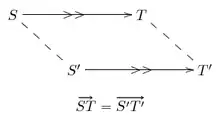 Par exemple, dans la figure ci-contre, les vecteurs liés et sont distincts car ils ont des points initiaux différents. En revanche, les vecteurs libres et sont égaux.