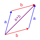 Étant donnés quatre points A, B, C, D du plan euclidien, l'addition des deux vecteurs et se construit en définissant un point E tel que (en traçant le parallélogramme BCDE).