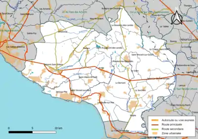 Située au sud-ouest du département de la Vendée, dans un territoire marqué du point de vue paysager par le Bas-Bocage et par le Marais poitevin, l'intercommunalité Vendée-Grand-Littoral regroupe 20 communes et s'étend sur 504,6 km2[9].