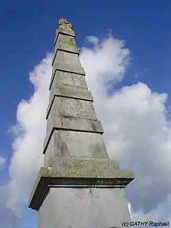 Baptisée pyramide alors qu'elle a plutôt la forme d'un obélisque, ce monument fait l'objet des interprétations les plus diverses alors qu'elle ne porte aucune inscription ou indice permettant d'éclaircir le mystère régnant autour de cette curiosité. Il est cependant probable qu'il s'agisse d'une borne géodésique de l'époque napoléonienne dont ce serait le seul exemplaire en Belgique ou peut-être un point de vue pour le château qui était tout proche et qui n'existe plus. Mais ce qui a surtout été retenu par les anciens, c'est que les alliés s'en servaient comme cible pour s'entrainer.