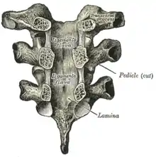 Les lames sont larges, épaisses et imbriquées – c'est-à-dire qu'elles chevauchent celles des vertèbres sous-jacentes comme des tuiles sur un toit et se connectent avec les pédicules pour entourer et protéger la moelle épinière.