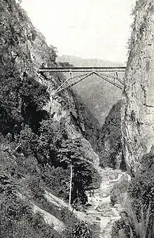 Le viaduc de Faux-Namti (Nami-ti), aussi connu sous les noms de pont à arbalètriers[1]ou Inverted V Bridge, ou Pont Renzi[2], chinois : 五家寨铁路桥 ; pinyin : ), est un pont ferroviaire à travée unique, situé dans le canton de Wantang du Xian de Pingbian, sur la rivière Sicha (四岔河), un affluent du fleuve Nanxi, dans la province chinoise du Yunnan. Depuis 2006, le pont est inscrit au Sites historiques et culturels majeurs protégés au niveau national en Chine.