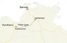 La route traverse la Victoria près de Timber Creek ; ce tronçon est particulièrement exposé aux inondations entre novembre et avril, pendant la saison des pluies. Jusqu'en 2008, il n'était pas rare qu'il soit coupé pendant des jours, voire des semaines, avec le pont sous plusieurs mètres d'eau au moment des crues. Un nouveau pont évite désormais cet inconvénient[1].