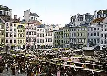 En 1701, la place est reconstruite sur les plans de l'architecte néerlandais, Tylman van Gameren. La mairie construite en 1429 est démolie. Depuis le XIXe siècle, les quatre côtés de la place du marché portent les noms de quatre Polonais remarquables qui vivaient là autrefois: Ignacy Zakrzewski (sud), Hugo Kołłątaj (ouest), Jan Dekert (pl) (nord) et Franciszek Bars (est).