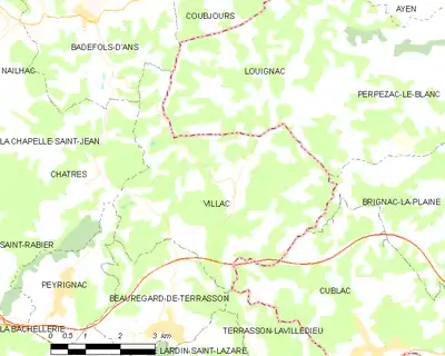 Villac est limitrophe de huit autres communes dont trois dans le département de la Corrèze. Au sud, Terrasson-Lavilledieu est limitrophe par un quadripoint.