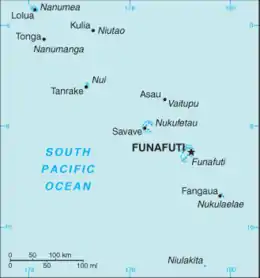 - C'est par extension de dénomination que l'atoll de Funafuti est donné comme capitale du pays ; en réalité, les institutions siègent à Vaiaku.