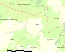Au-delà de la limite départementale, dans les Deux-Sèvres, la commune d'Aubigné, située dans le canton de Chef-Boutonne, jouxte la petite commune de Vinax.