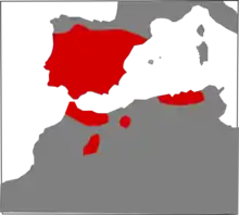 Cette espèce se rencontre dans le nord du Maroc, dans le nord de l'Algérie, dans le nord de la Tunisie, au Portugal et en Espagne[1].