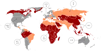 Il existe différents sous-types du VHB définis par une variabilité dans les épitopes de l'antigène HBs, due à une hétérogénéité du génome viral. On distingue ainsi huit souches du VHB, nommées de A à H. Certaines de ces souches sont surtout présentes dans certaines régions du Globe :