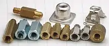 Ce sur-élévateur est à la fois une vis et un écrou de type 6-32 avec un corps de section hexagonale. L'assemblage de ces deux éléments en un s'appelle aussi entretoise.