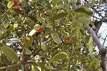 Viscum cruciatum avec ses fruits, sur un olivier à Vélez-Málaga (Espagne).