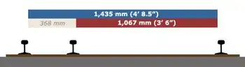 Dans la banlieue d'Adelaide, les traverses en bois prévues pour la voie large ont été remplacées par des traverses en béton prévues pour un éventuel changement d'écartement.
