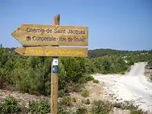 - le sud-est en empruntant la voie de la Nive jusqu'à Saint-Jean-Pied-de-Port, pour éviter le Camino del Norte et se diriger vers le Camino navarro, avant le franchissement des Pyrénées, en vue de rejoindre le Camino francés.