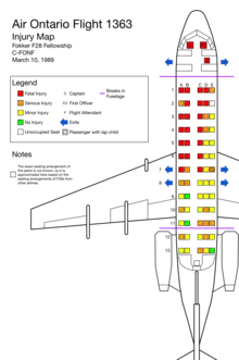 Plan représentant l'emplacement des morts et des blessés à l'intérieur de l'avion