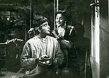 La même année, Bimal Roy lui confie le rôle de Chandramukhi (en) aux côtés de Dilip Kumar dans le film Devdas, adapté du roman de Saratchandra Chattopadhayay portant le même titre et acclamé par la critique. Au départ, l'industrie n'est pas favorable à ce choix lorsqu'elle entend parler de Vyjayanthimala, dans le film de Bimal Roy, la réponse est : « Pourquoi ne pas prendre le comédien Kishore Kumar dans le rôle de Devdas ? »[23]. Initialement, Nargis est sélectionnée pour le rôle de Chandramukhi, mais elle refuse le rôle. Celui-ci est ensuite proposé à Bina Rai et Suraiya, mais elles refusent également car elles veulent jouer le rôle principal de Paro, qui avait été proposé à Meena Kumari[24]. Par la suite, l'unité du film souffre d'une crise financière et c'est à ce moment-là que Vyjayanthimala propose de jouer le rôle de Chandramukhi, où elle dit à Bimal Roy, « Je suis prête si vous pensez que je peux le faire »[23]. D'autre part, Nabendu Ghosh (en), le scénariste de Devdas, déclare : « Je n'approuvais pas Vyjayanthimala [dans le rôle de Chandramukhi], mais nous n'avions pas le choix - personne ne voulait jouer Chandramukhi, et nous étions engagés envers nos distributeurs... Elle était bien sûr une très bonne actrice, mais elle était trop jeune pour Chandramukhi, tel que l'envisageait Saratbabu. »[23]. À propos de sa performance, Rediff écrit : « Vyjayanthimala imprègne Chandramukhi d'une véritable sympathie. Qui mieux que Chandramukhi connaîtrait la douleur d'un amour sans espoir ?.... Vyjayanthimala, une star après le blockbuster Nagin, devait encore établir ses références d'actrice lorsque Roy est allé à contre-courant en lui confiant le rôle de Chandramukhi. »[25]. Par la suite, elle remporte le Filmfare Award de la meilleure actrice dans un second rôle mais elle refuse de l'accepter, déclarant que son rôle était un rôle principal et d'importance égale à celui joué par Suchitra Sen et non un rôle secondaire[26]. En 2006, un sondage, réalisé par Rediff, classe son rôle de Chandramukhi comme l'un des meilleurs personnages de Tawaif (en) à Bollywood[27]. Par la suite, le même rôle est listé par Nikhat Kazmi (en) dans l'article de The Times of India « 10 prostituées de celluloïd que vous avez aimées »[note 1] à la sixième place[28]. Bien que le film ait été un succès critique, il ne recueille pas beaucoup de soutien au box-office et finit 10e film le plus rentable de 1955, avec un verdict moyen[29].