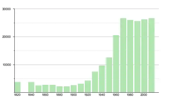 Dans la ville la pyramide des âges était 20,1 % en dessous de 18 ans, 4,8 % de 18 à 24, 26,6 % de 25 à 44, 25,1 % de 45 à 64, et 23,5 % qui avaient 65 ans ou plus. L'âge médian était 44 ans. Pour 100 femmes, il y avait 86,6 hommes. Pour 100 femmes de 18 ans ou plus, il y avait 82,4 hommes.
