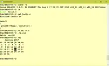 Support de curses : les programmes utilisant curses (utilisation plein écran du terminal en mode texte) se compilent sans erreur et leur binaire fonctionne soit dans la fenêtre bash de Windows 10, soit dans un xterm[36] que l'on peut ouvrir sur un serveur X lancé sous Windows (ou un autre serveur X d'une machine distante). Un répertoire quelconque de Windows depuis la session Linux s'accède par un lien symbolique : ln -s /mnt/c/Users/Votrenom/Desktop/dossier dossier.