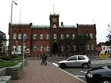 - L'hôtel de ville néogothique en briques d'un rouge vif (1881).