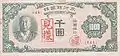 1000 wons | 171 × 78 mm | Vert | Valeur | Imprimerie nationale japonaise | |||