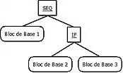 - L’étape suivante est relative à la description structurelle du code du programme. Elle est réalisée au travers d’une analyse de langage haut niveau en représentant un arbre syntaxique ayant pour feuilles les blocs de base ou les appels de fonction (CALL), et pour nœuds les séquences (SEQ), les conditions (IF), et les boucles (LOOP) d’instructions.