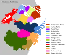 Les principaux de ses dialectes sont ceux de Changzhou, Hangzhou, Huizhou, Jiaxing, Ningbo, Shanghaï, Shaoxing, Wuxi.