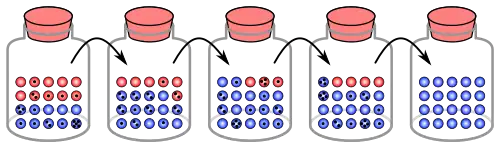 C’est la dérive génétique, soit la modification aléatoire de la fréquence d’allèles dans une population, qui permet aux sous-populations de descendre du pic vers une vallée. Cela est possible dans de petites sous-populations puisque la dérive génétique aurait un effet puissant. Ensuite, la sélection naturelle va faire grimper la sous-population jusqu’au sommet du pic. Ce mouvement de sous-population vers un nouveau pic, soit le phénomène de peak-shift, représente la spéciation[6].