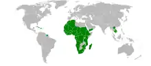 - sub-saharienne: Afrique du Sud, Angola, Burundi, Cap-Vert, Djibouti, Érythrée, Éthiopie, Ghana, Gambie, Guinée, Kenya, Liberia, Madagascar, Mauritanie, Mozambique, Namibie, Nigeria, Ouganda, République démocratique du Congo, Rwanda, Sao Tomé-et-Principe, Sierra Leone, Soudan, Tanzanie, Zimbabwe.